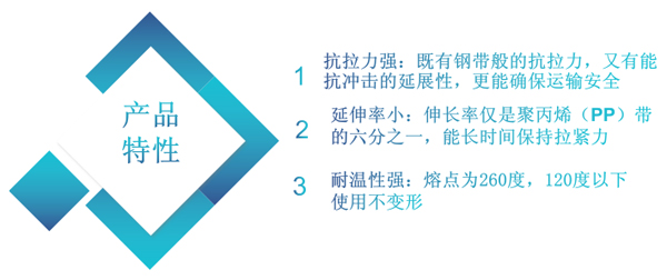 4、适应性 : PET带因材质和制作工艺因素,能适合各种气候变化,耐高温、耐潮湿,不象钢带受潮生锈污染环境及损失抗拉性,使捆包强度减小。